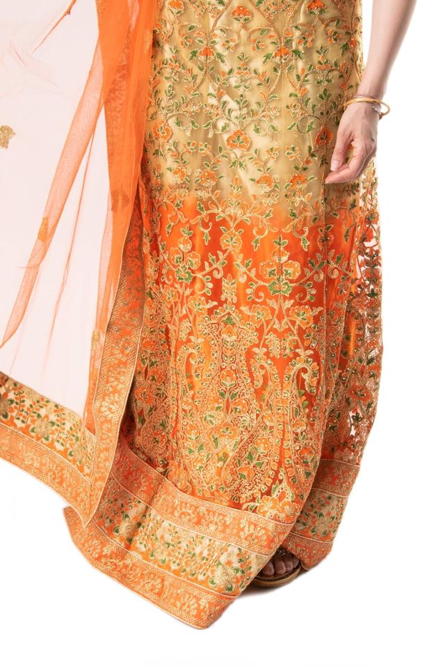 【最終値下げ】レヘンガドレス セット インド オレンジ パーティードレス サリー 1点物】インドのレヘンガドレスセット - オレンジ の通販[送料