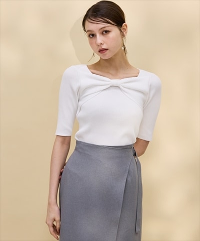 スウィングル アイボリー ホワイトニット SWINGLE ニット セーター 2WAY五分袖レースカラーリブニットプル