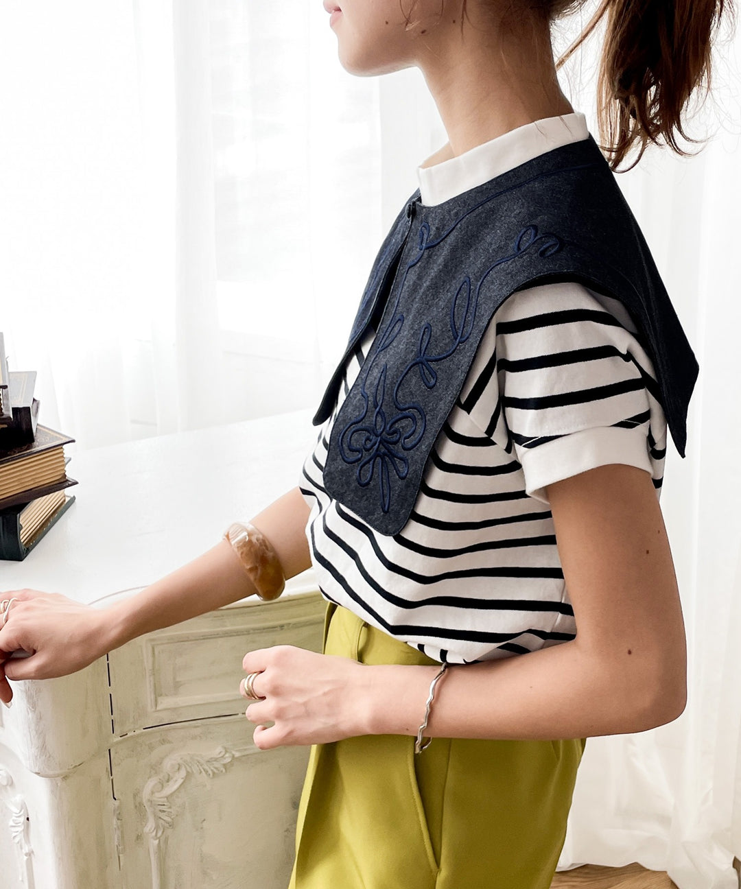 ネセセア 春秋用 刺繍つけ襟つき♡ノーカラーコート ベージュ ネセセア 春秋用 刺繍つけ襟つき♡ノーカラーコート ベージュ